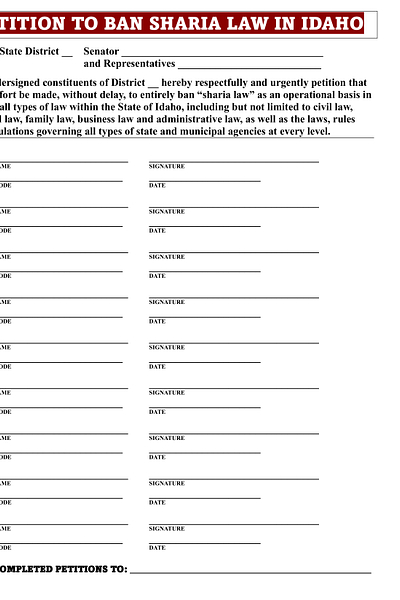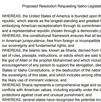 A Petition to Oppose Sharia Law in Idaho (petition and related resolution PDFs below; Substack Note includes people to call and links to related articles). 🆕