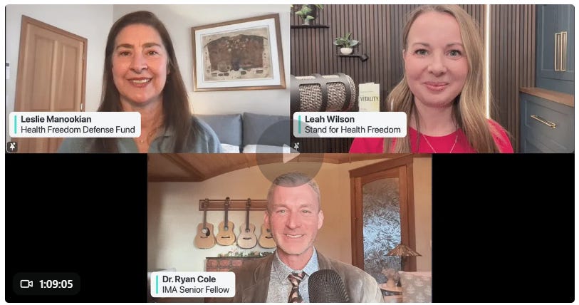 Why the Medical Freedom Act Coalition Matters Now: How States Are Leading the Fight. The Medical Freedom Act Coalition is pushing legislation in multiple states to end medical mandates. Leslie Manookian and Leah Wilson break down the Idaho model and how citizens can take action. Host: Dr. Ryan Cole | Guests: Leah Wilson, Esq., Leslie Manookian. (02/14/26, article + video 01:09:05 includes transcript)