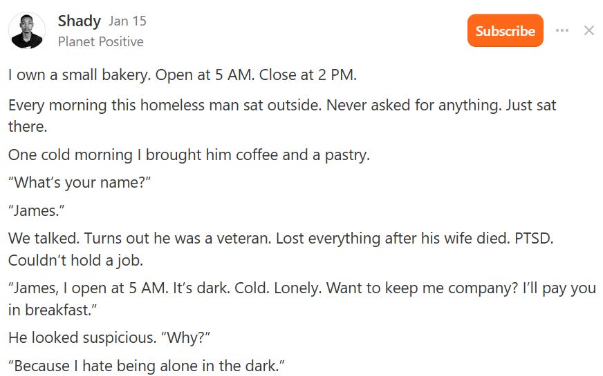 Pay it Forward: How one man’s action changed the trajectory of a homeless person by giving a hand up, not a hand out. This will warm your heart! By Shady (02/15/26)